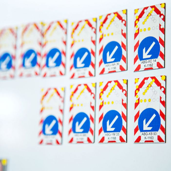 Die Anforderungen an Verkehrszeichen, Hinweistafeln und Wechselverkehrszeichen werden immer individueller und höher. Deshalb fertigen wir an unserem Standort jedes Schild nach Standard und an Kundenwünsche einzeln angepasst. Hierfür sind wir per Autorisierungssiegel mit Kennziffer A14 berechtigt. Das Sortiment reicht dabei von kleinen Zusatzzeichen bis hin zu Großbeschilderungen. Insbesondere temporäre Sperrungen erfordern die zügige Änderung der wegweisenden Beschilderung.